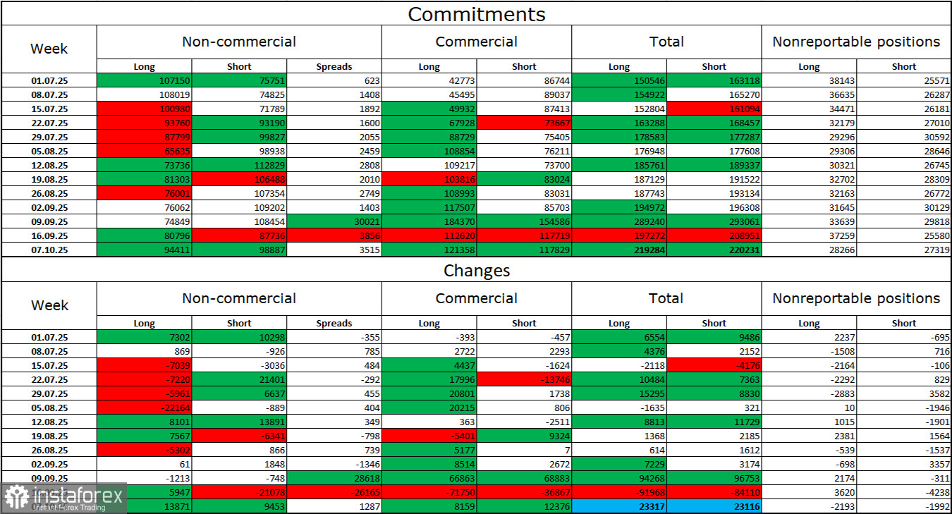 在過去的報告週中,「非商業」類別的交易者情緒變得更加「看漲」,但那週已是一個半月前—10月7日。投機者持有的多頭頭寸增加了13,871個,而空頭頭寸則增加了9,453個。現在多頭和空頭頭寸的差距如下:94,000對98,000—幾乎相等。
