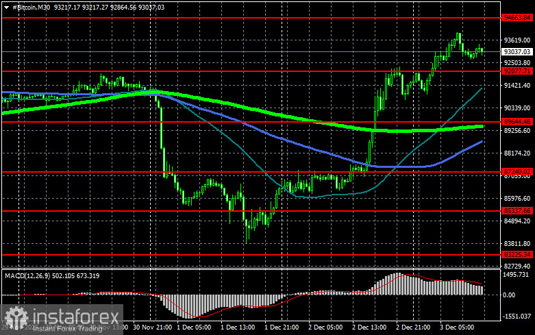 從比特幣的技術圖表來看,目前買家正試圖重回 $94,600 水平,這將直接開啟通往 $97,300 的途徑。從那裡到達 $99,400 水平僅需一步之遙。最遠的目標將是約 $102,300 的高點,突破這一水平將意味著嘗試重返牛市。如果比特幣下跌,我預計在 $92,000 附近會有買家進場。若交易工具回落至該區域下方,可能會迅速將比特幣推低至約 $89,600。此情況下最遠的目標將是 $87,200 區域。