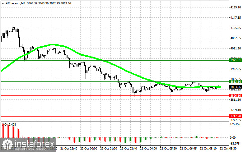 - Szenario #2: Ethereum kann von der unteren Grenze bei $3.826 gekauft werden, wenn es keine Reaktion auf einen Ausbruch nach unten gibt, und zielt auf die Niveaus von $3.883 und $3.971.