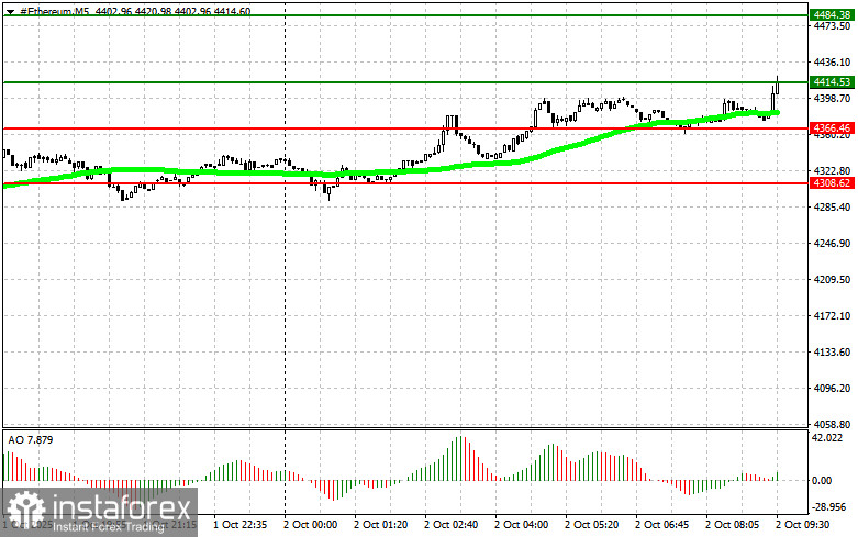 Scénario 2 : Ethereum peut également être acheté à partir de la limite inférieure à 4 366 $ s'il n'y a pas de réaction du marché à son breakout, avec un mouvement potentiel de retour à 4 414 $ et 4 484 $.