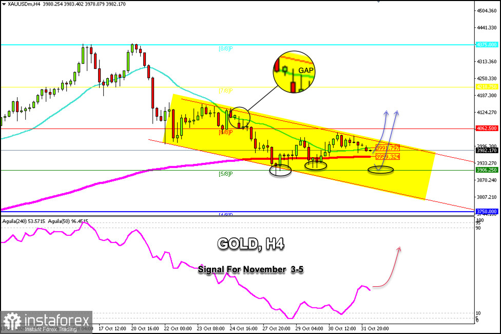 Emas diperdagangkan sekitar $3.982, di bawah SMA 21 hari dan dalam saluran tren menurun yang terbentuk pada 22 Oktober, dengan bias negatif. Kemungkinan besar akan terus turun dalam beberapa jam ke depan, berpotensi mencapai level 5/8 Murray sekitar $3.906.