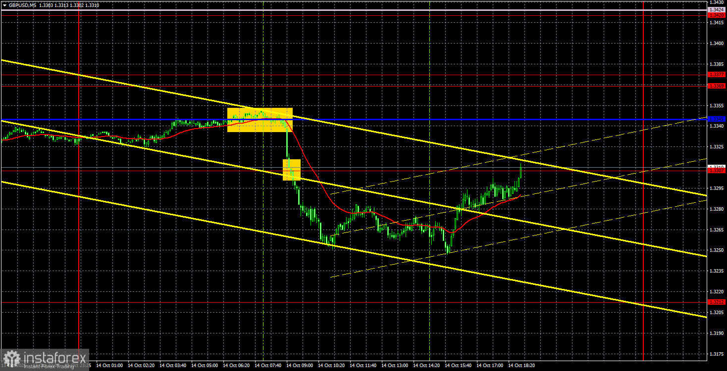 Pe graficul de 5 minute, a existat o oportunitate de a deschide poziții short devreme în dimineață. Prețul a revenit din linia Kijun-sen și ulterior a depășit nivelul de 1.3307. Cu toate acestea, urșii nu au reușit să ajungă la ținta cea mai apropiată de 1.3212. A urmat o inversare în timpul sesiunii americane, iar prețul a revenit rapid la 1.3307. Drept urmare, orice profit din singura tranzacție ar fi necesitat o închidere manuală.