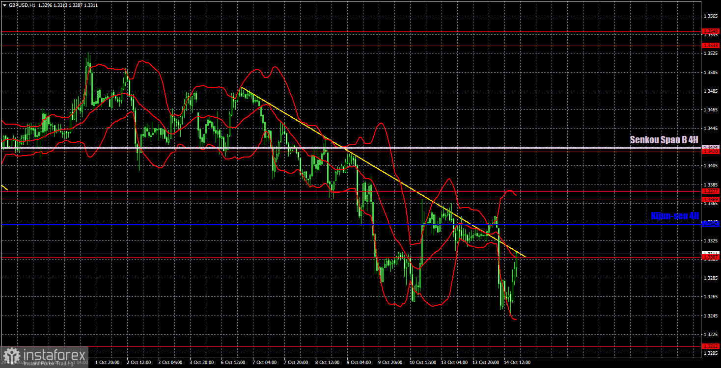 Pe graficul orar, GBP/USD continuă să arate o tendință descendentă, deși a depășit anterior linia de trend. Acesta este un alt semn al lipsei de logică din spatele mișcării curente. Dolarul american încă nu are motive pe termen lung să se întărească, așa că ne așteptăm ca tendința ascendentă care a început în 2025 să revină eventual. În condițiile actuale, este necesară o străpungere peste linia de trend și peste linia Kijun-sen pentru a confirma o nouă mișcare ascendentă.