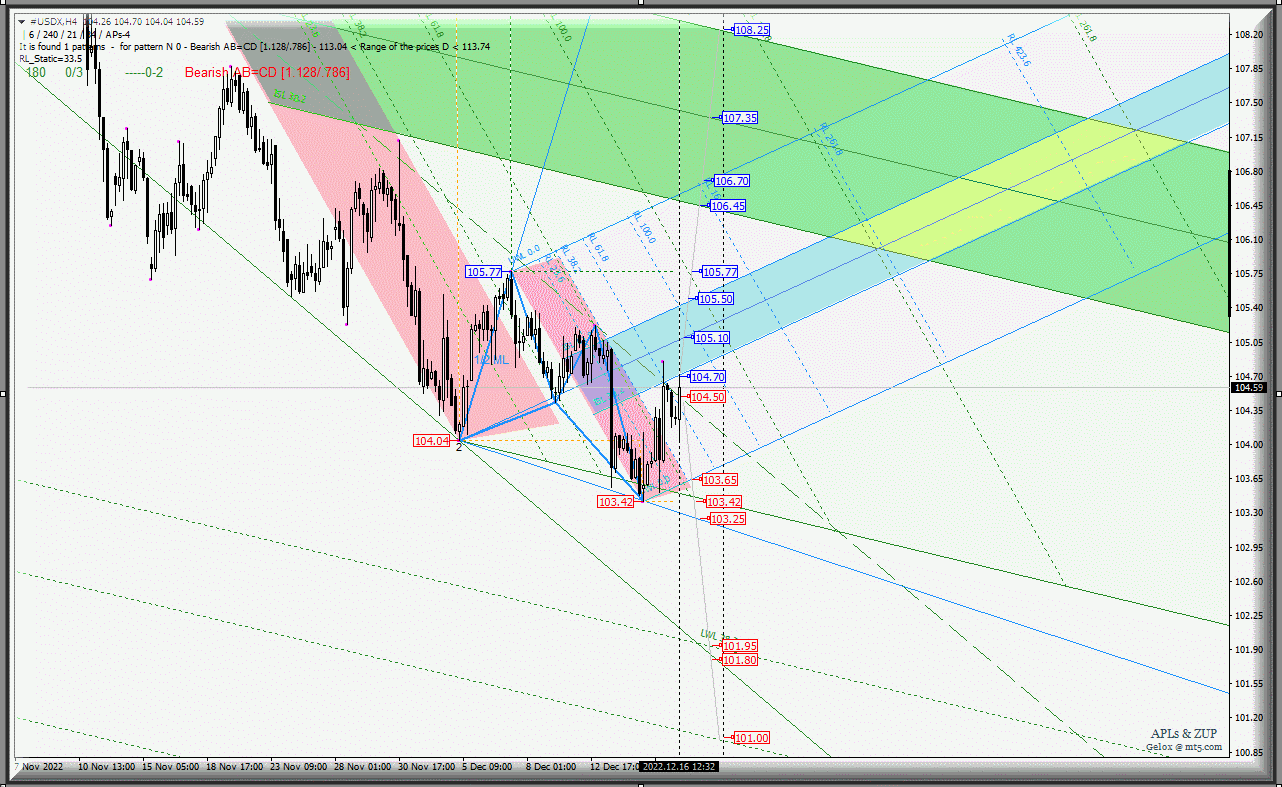 #USDX vs EUR/USD & GBP/USD - h4 - технические уровни для торговли - обзор вариантов движения с 19 декабря 2022 г.