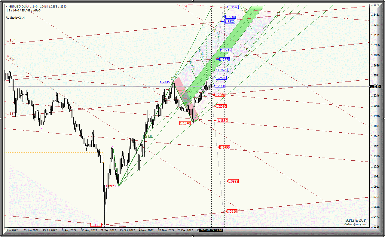 И развитие движения валюты Его Величества - GBP/USD-Daily с 30 января 2023 г. продолжится в зоне равновесия (1.3330 - 1.2775 - 1.2620) зоны равновесия вил старшего операционного масштаба Minor-Daily в соответствии с учетом направления пробоя диапазона: