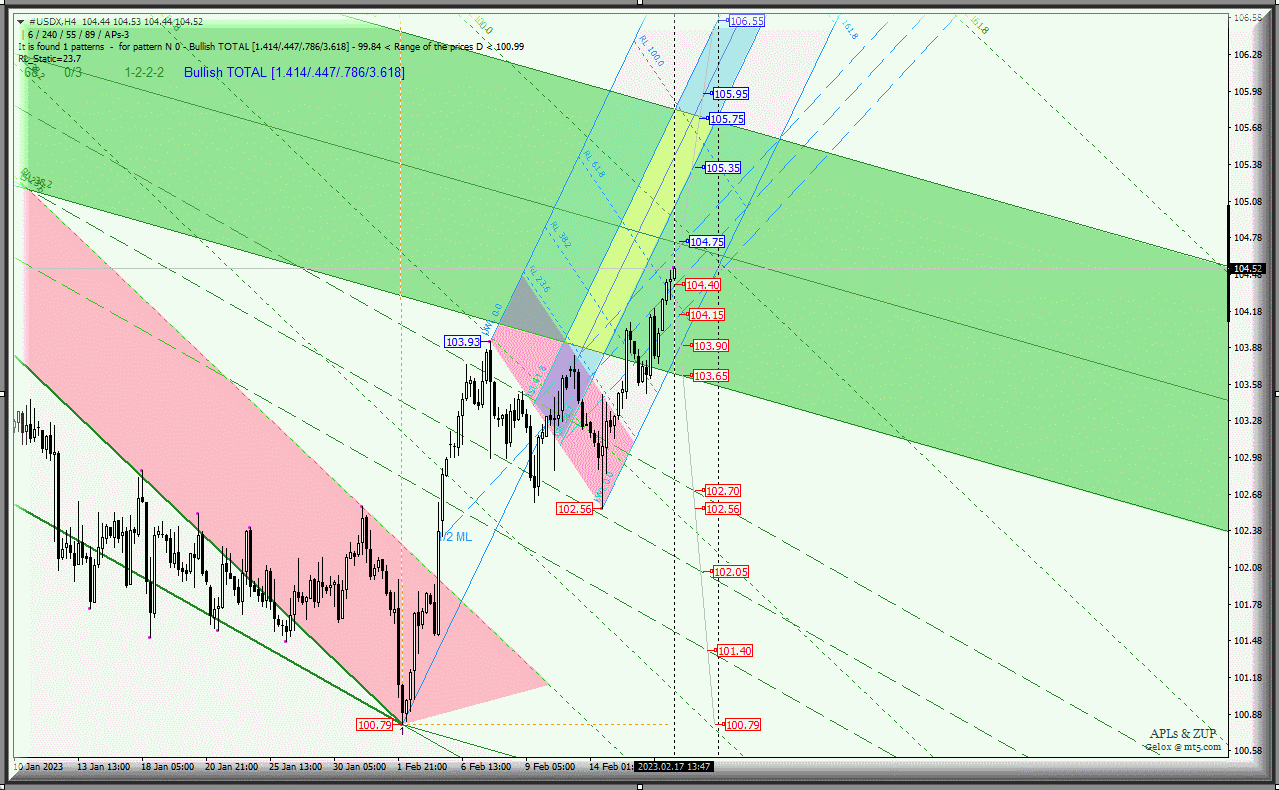 #USDX vs EUR/USD & GBP/USD - h4 - технические уровни для торговли - обзор вариантов движения - с 20 февраля 2023 г.