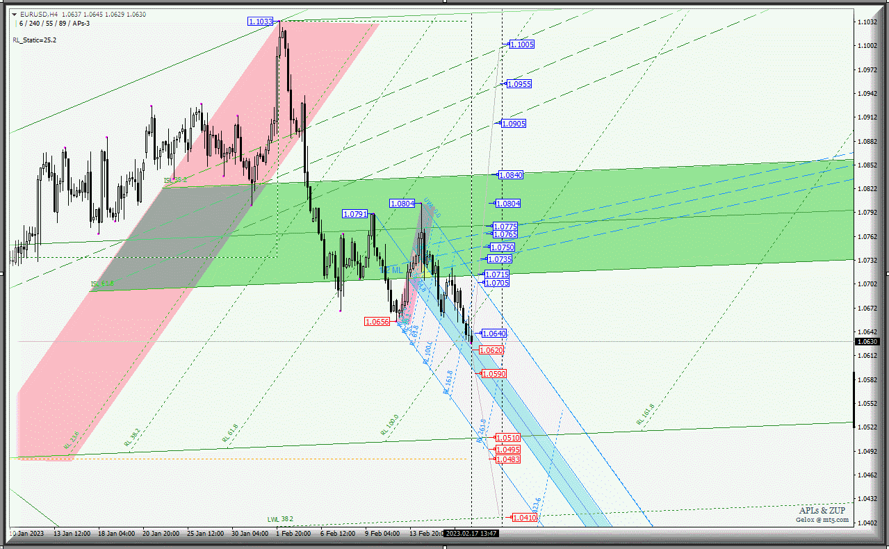 Единая европейская валюта - EUR/USD-h4 - с 20 февраля 2023 г. станет развивать свое движение в зависимости от отработки и направления пробоя границ зоны равновесия (1.0640 - 1.0620 - 1.0590) вил младшего операционного масштаба Minuette-h1.