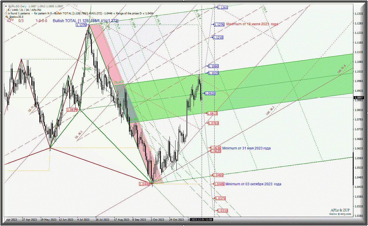 В декабре Euro vs US Dollar "заморозит" свой рост и направится вниз? Комплексный анализ (анимационная разметка) - APLs & ZUP - с 4 декабря 2023 года.