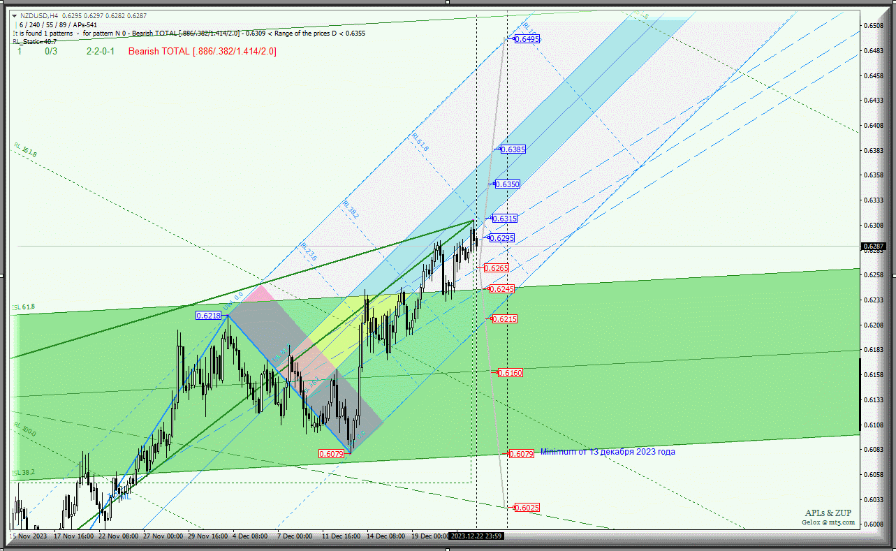 Новозеландский доллар - NZD/USD-h4 с 26 декабря 2023 г. продолжит развивать движение исходя из отработки и направления пробоя границ канала 1/2 Median Line (0.6295 - 0.6265 - 0.6245) вил младшего операционного масштаба Minuette-h1.
