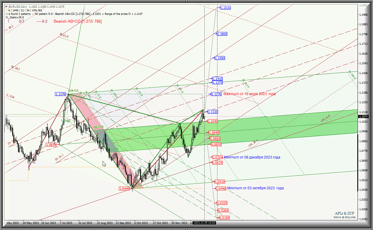 Единая европейская валюта - EUR/USD-Daily в январе 2024 года станет развивать свое движение в соответствии с отработкой и направлением пробоя диапазона: