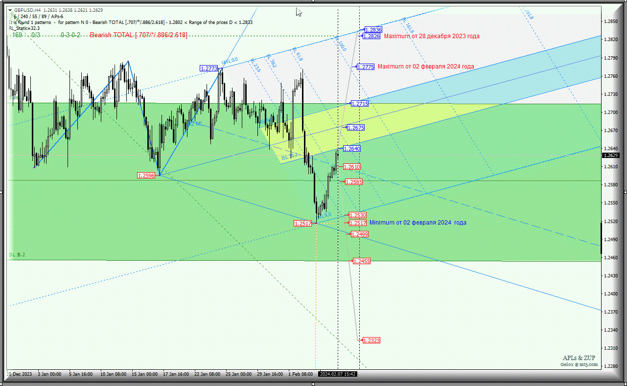 FX.co ★ Great Britain Pound vs US Dollar - основные торговые уровни. Комплексный анализ (анимационная разметка) APLs & ZUP с 08 февраля 2024 года