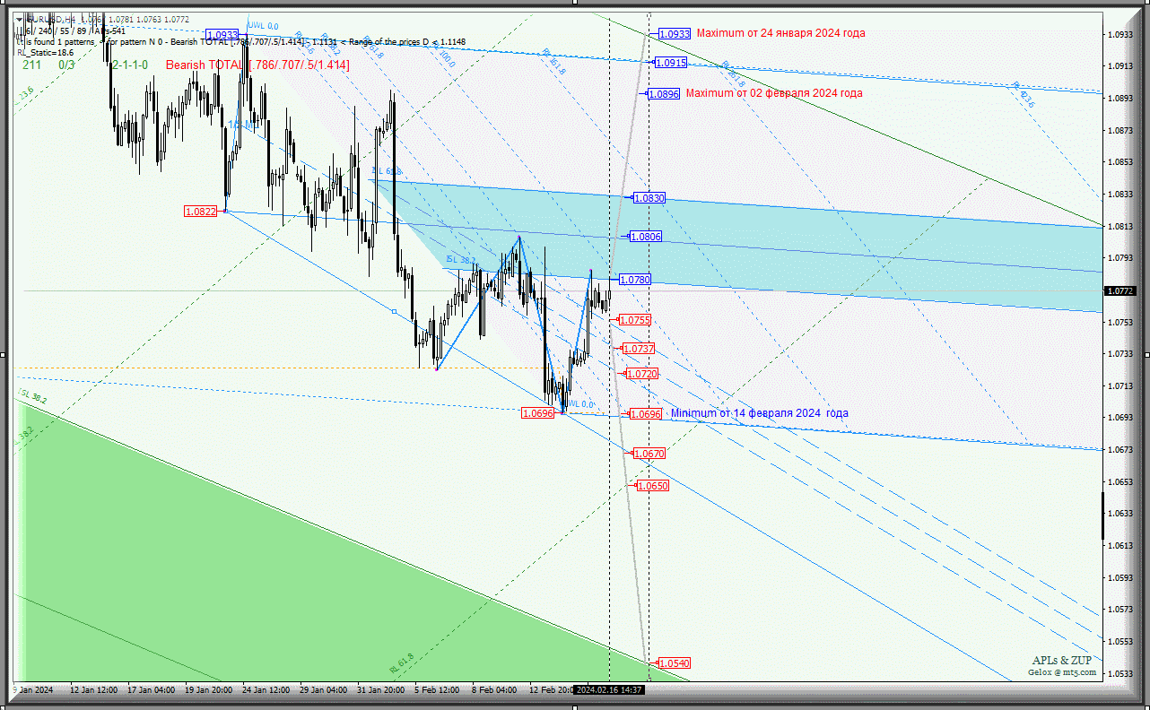 Предыдущий обзор EUR/USD (таймфрейм h4) от 14.02.2024 г. 15:35