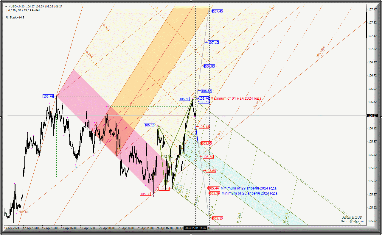 #USDX SubMinuette-m30 - обзор вариантов движения - 01-03 мая 2024 года.