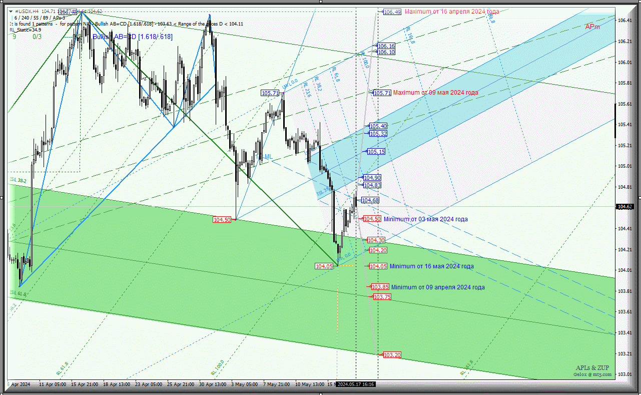 Предыдущий обзор #USDX (таймфрейм h4) от 10.05.2024 г. 12:28