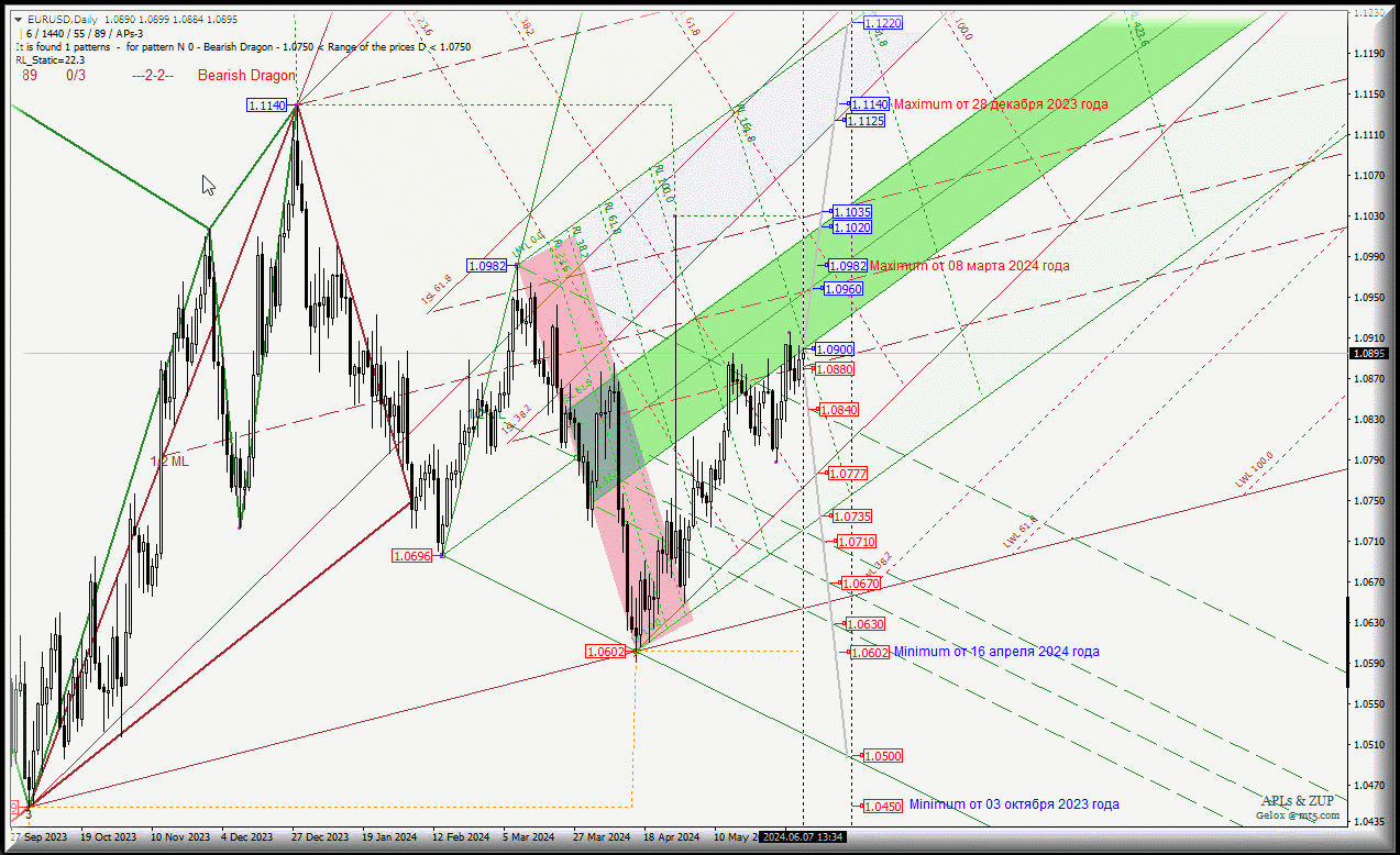 EUR/USD - Daily - обзор вариантов движения - c 10 июня 2024 года.