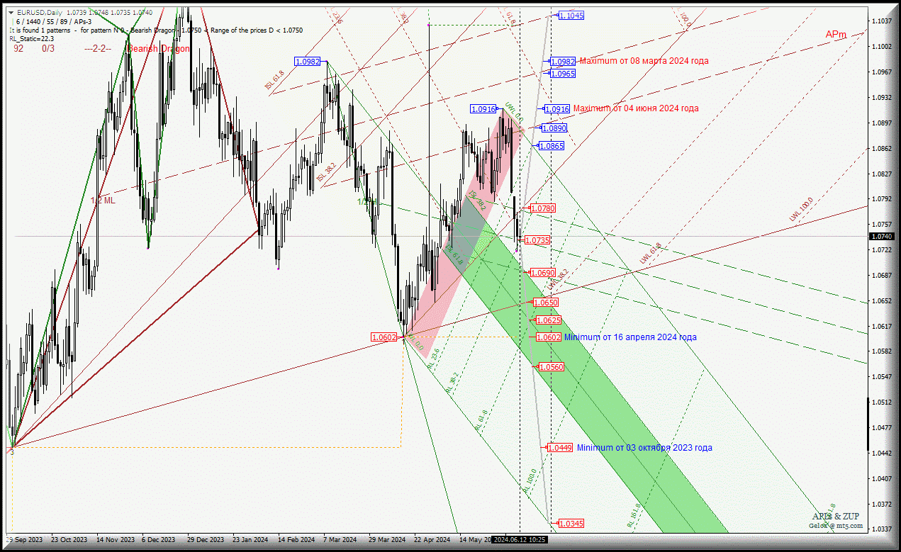 EUR/USD - Daily - обзор вариантов движения - c 12 июня 2024 года.