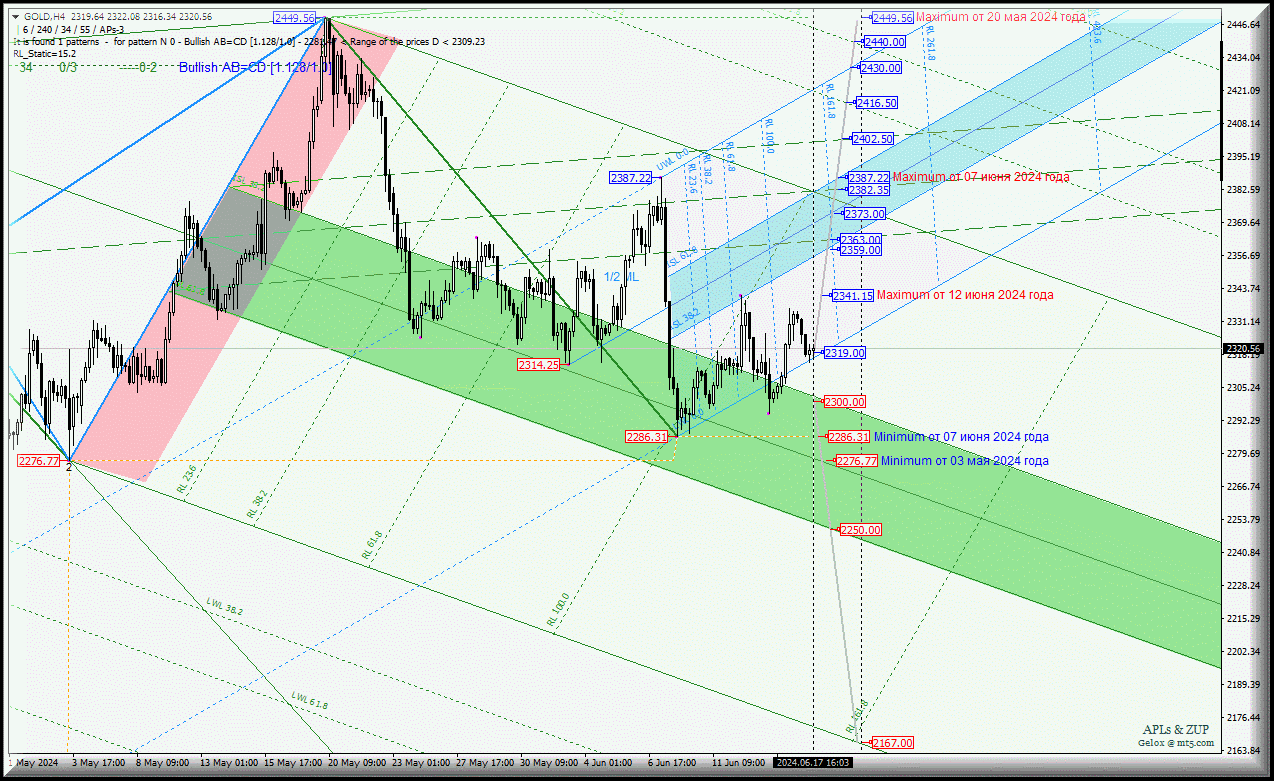 В случае же возврата Spot Gold ниже ISL38.2 Minute-h4 (уровень поддержки 2300.00) движение этого инструмента снова получит развитие в зоне равновесия (2300.00 - 2276.77 - 2250.00) вил старшего операционного масштаба Minute-h4 с учетом отработки maximum`s - 2286.31 (от 07 июня 2024 года) и 2276.77 (от 03 мая 2024 года).