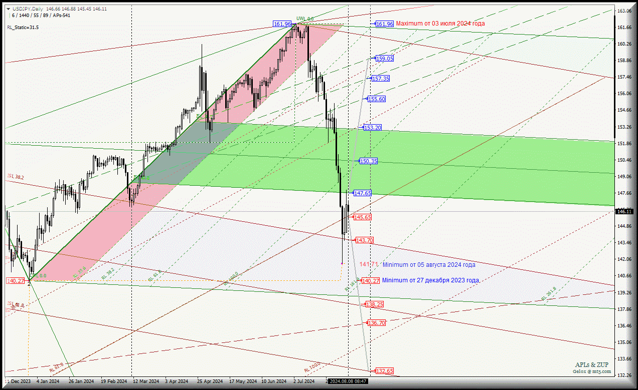 USD/JPY - Daily - обзор вариантов развития движения данного валютного инструмента с 08 августа 2024 г.