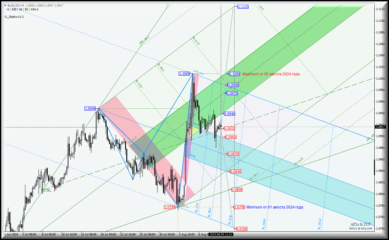 Движение единой европейской валюты - EUR/USD-h4 с 12 августа 2024 года будет определяться отработкой и направлением пробоя диапазона: