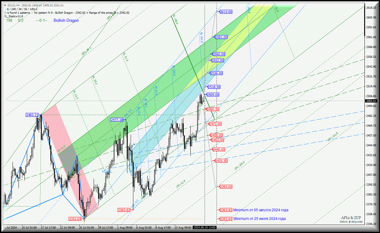 Развитие движения Spot Gold-h4 с 20 августа 2024 года снова станет проистекать в соответствии с отработкой и направлением пробоя диапазона: