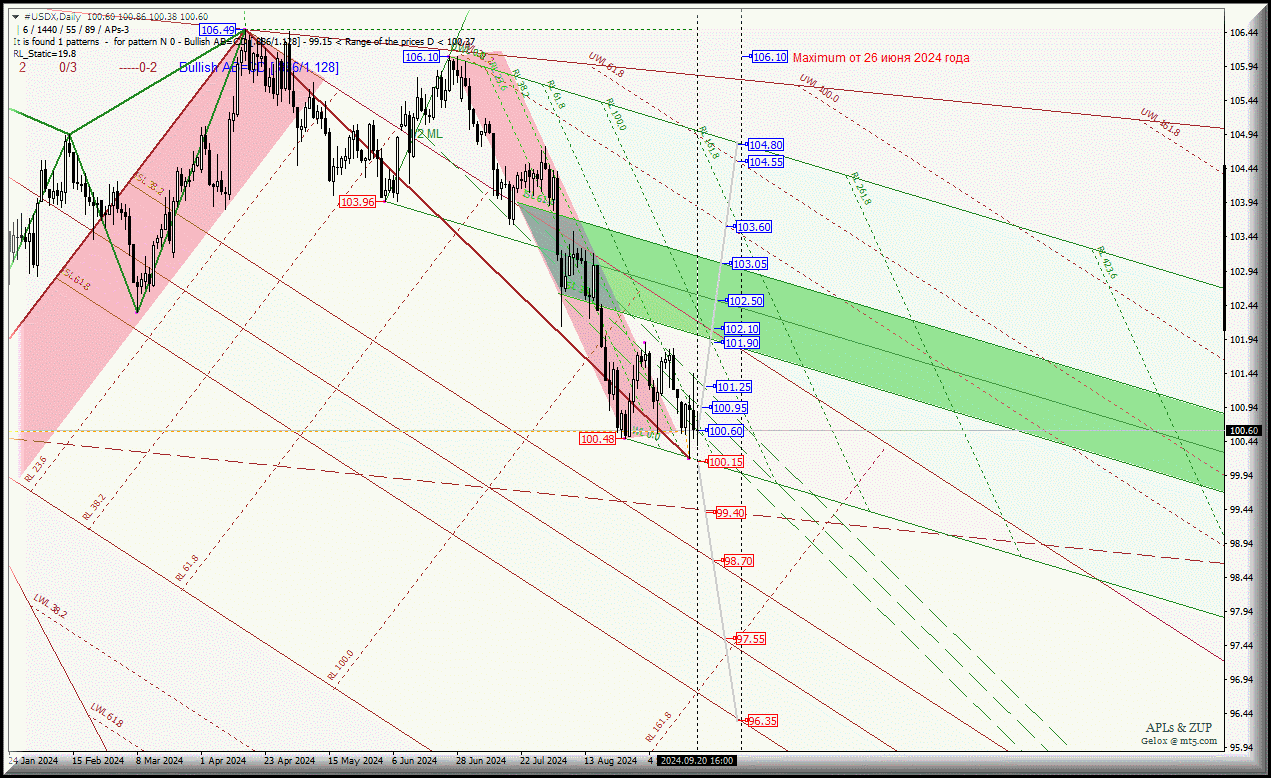 Движение индекса доллара - #USDX-Daily - с 23 сентября 2024 года продолжится исходя из отработки и направления пробоя диапазона: