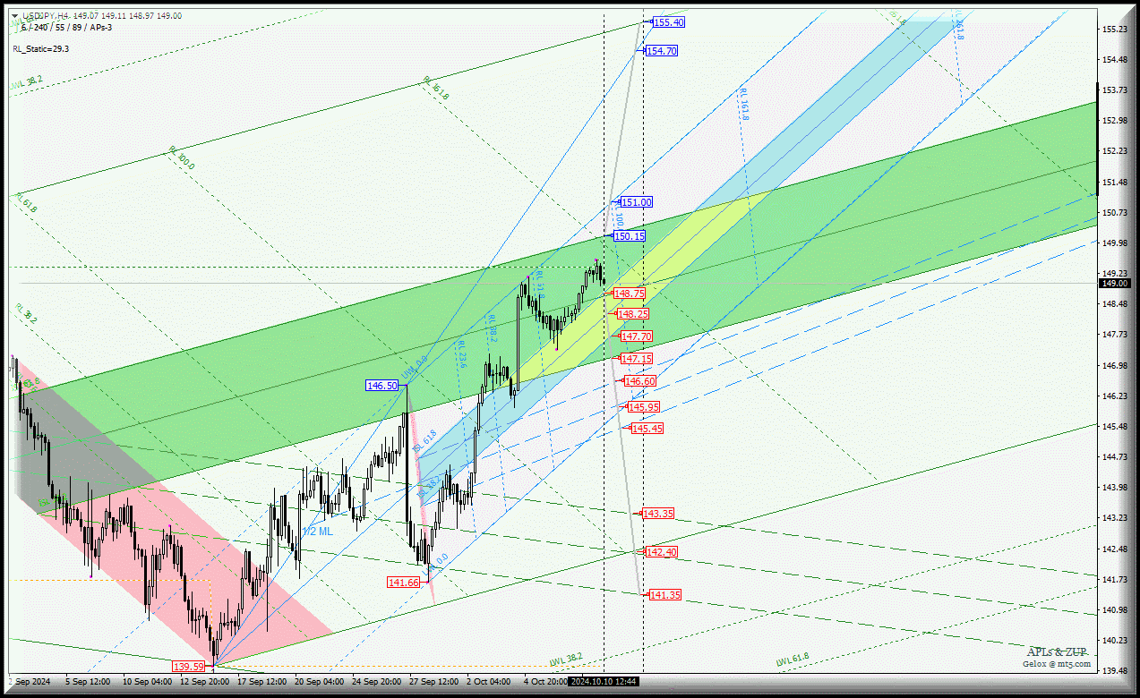 USD/JPY - h4- обзор вариантов развития движения данного валютного инструмента с 11 октября 2024 года.