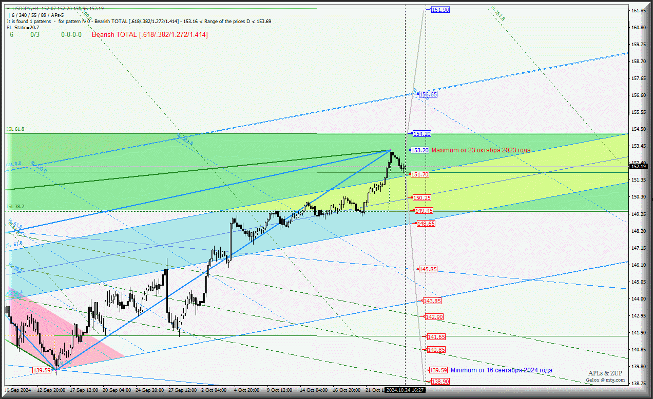 USD/JPY - h4 - обзор вариантов развития движения данного валютного инструмента с 25 октября 2024 года.