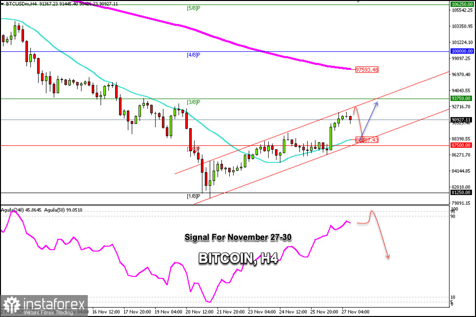 Bitcoin กำลังซื้อขายอยู่ที่ประมาณ $90,927 หลังจากการปรับตัวขึ้นที่แข็งแรงจากจุดต่ำสุดที่ $80,000 ปัจจุบัน Bitcoin มีภาวะซื้อมากเกินไปอย่างที่เห็นได้ในกราฟ H4 เราอาจคาดว่า Bitcoin จะลดลงต่ำกว่า $92,500 ในชั่วโมงถัดไป จากนั้นอาจลงไปถึงแนวรับที่ด้านล่างของช่องแนวโน้มขาขึ้นที่ประมาณ $88,287