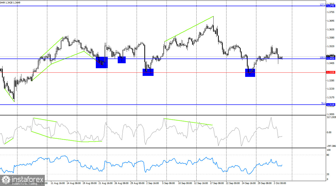 ในกราฟ 4 ชั่วโมง คู่สกุลเงินมีการฟื้นตัวจากระดับ 1.3339 และสนับสนุนเงินปอนด์อังกฤษ การปิดเหนือระดับ Fibonacci 100.0% ที่ 1.3435 จะเพิ่มความเป็นไปได้ของการเติบโตต่อเนื่องไปยังระดับ retracement 127.2% ที่ 1.3795 วันนี้ ไม่มีการเบี่ยงเบนที่เกิดขึ้นในตัวชี้วัดใดๆ คาดว่าเงินปอนด์จะลดลงอีกครั้งหลังจากปิดต่ำกว่า 1.3339 เท่านั้น